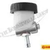 The reservoir cup assembly supplies the master cylinder with hydraulic fluid through a delivery hose. The entire assembly is sealed with an o-ring between the reservoir cup and block, and a copper washer at the junction for the outlet spigot.