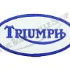 Triumph Motorcycle Patches – Fly your flag with this classic Triumph logo embroidered patch. Sew it onto your jacket, hat, or whatever else you can imagine! Blue stitching on white background, approximately 2″ x 4″, sold individually.