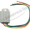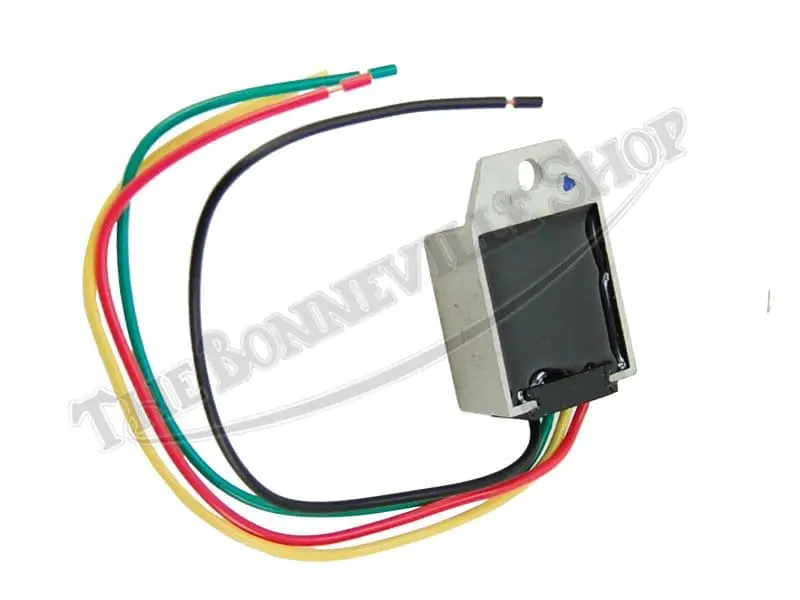 Solid state voltage 6V regulator for positive earth (ground) 6V DC generator charging systems as were used on many vintage British motorcycles. The small footprint of this regulator (less than 2-1/2″ x 1-3/4″ x 3/4″ not including wires) makes it possible to contain within the original regulator casing to preserve original appearance of the bike. Easy to follow instructions are included.