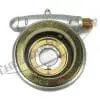 The speedometer drive gearbox is fitted over the rear wheel spindle onto the hub and turns with the wheel. The internal gear drives the cable to the speedometer.