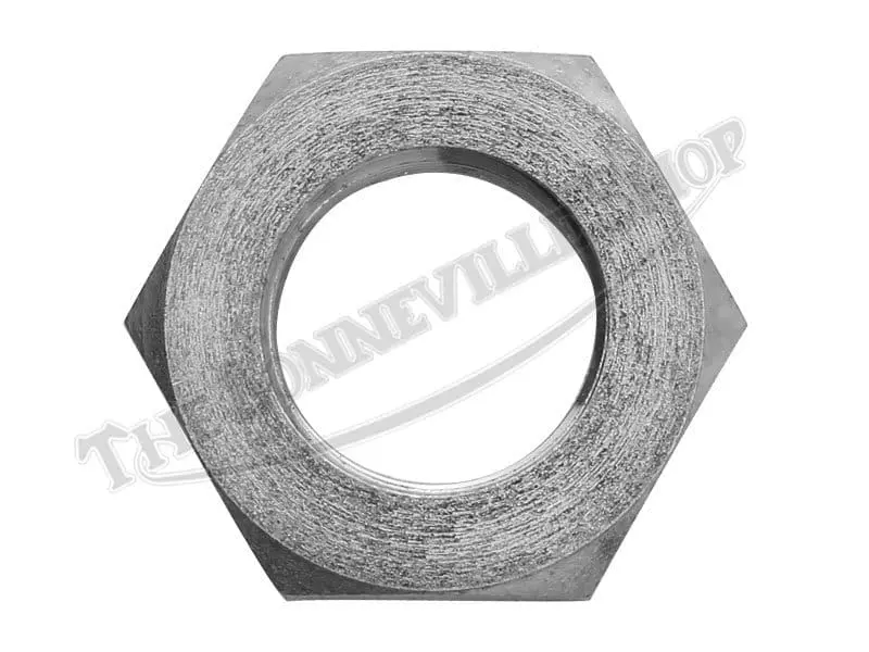 The thin axle nut is threaded with 20 TPI CEI threads for fitment onto the full-width cast iron front hub spindle. Suitable for use on BSA and Triumph models from 1958-1968. Made in the UK.