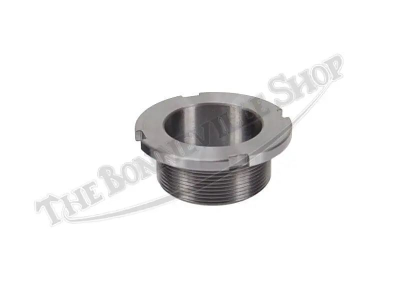 The 28 TPI bottom fork nut retains the lower fork bush and shuttle valve in the 1968-1973 shuttle valve forks. Note: the early production 1968 Triumph 650 models between VIN numbers DU66246 and DU68363 were fitted with fork stanchions with 26 TPI CEI threads and use the 97-2224 bottom fork nut.