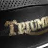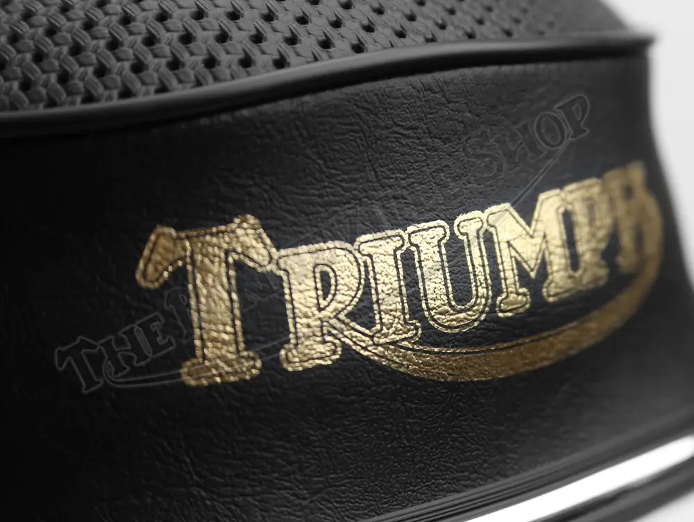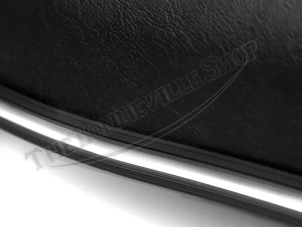 Absolutely top of the line, beautiful U.K. made, new production Triumph seat, PN# 83-4786 as used on Triumph T140 Bonneville and TR7 Tiger models from 1973 and 1977. Left hand hinge for us market Triumphs.
