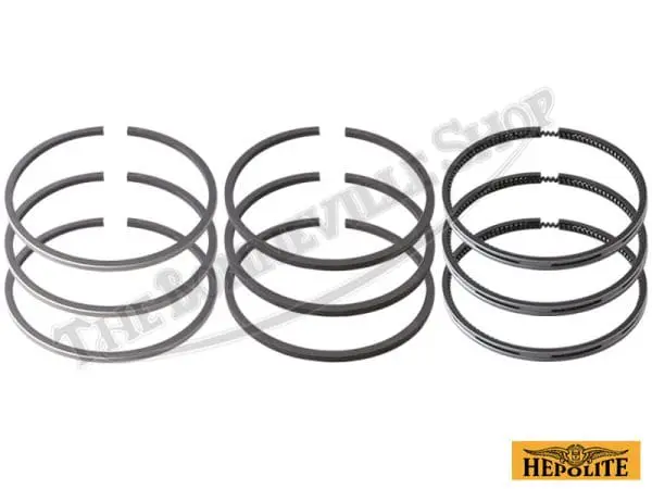 The piston rings form a seal during compression and promote oil lubrication of the cylinder bore walls. They must be accurately sized to fit in the piston ring grooves with clearance. The current production Hepolite piston rings are an excellent complement to the original Hepolite pistons, as supplied from the factory.