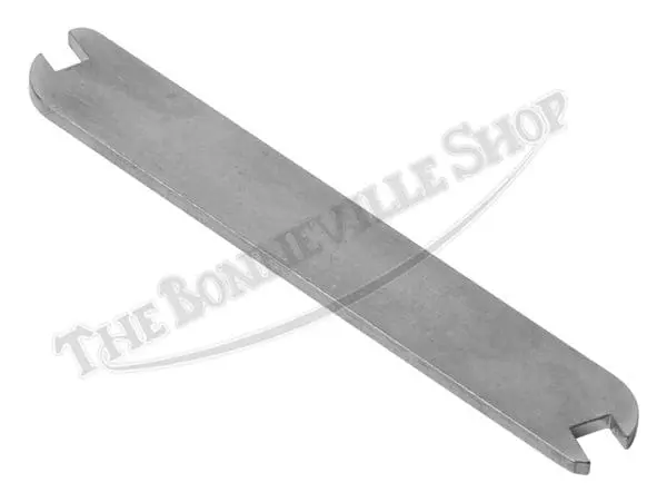 This clever and economical double-ended wrench allows for tappet adjustments in tight positions due to its angled cuts for the square head rocker pins on Triumph twins.