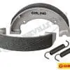 This matched brake shoe set is compatible with the 5.5″ BSA and Triumph front and rear hubs as fitted to the 1959-1967 BSA Bantam, Bushman, and Triumph Cub single cylinder “flyweight” models. Replacement springs are included. Top quality and fitment from Girling.