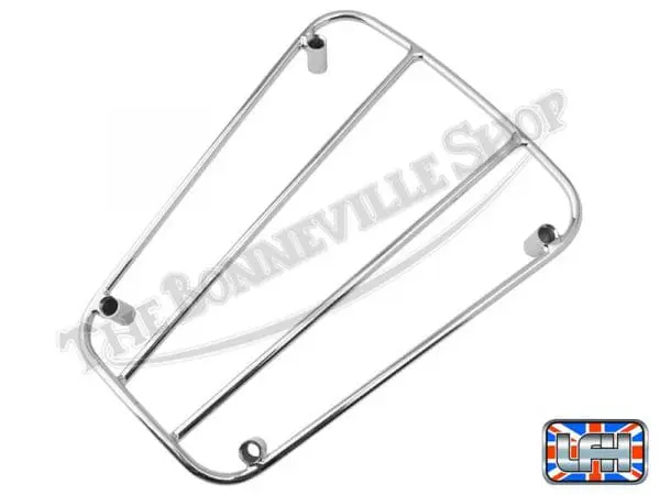 U.K made Triumph parcel grid/tank rack. This will fit Triumph twins between 1957 and 1968 including Bonneville, Trophy, Tiger, T120, TR6, etc.