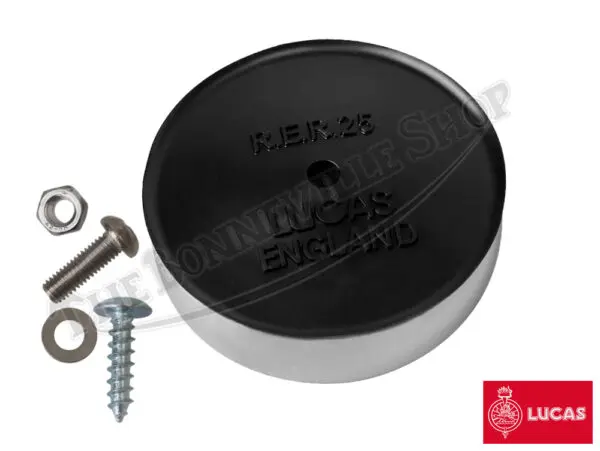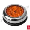 This genuine Lucas amber reflector assembly features the original-style embossments on the lens and is finished with an attractive chrome bezel. The outside diameter measures approximately 2″.