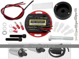 The Tri-Spark Classic Twin utilizes 21st century technology to provide simple installation without the black box, superior running and easy starting without kick back. Many years of experience with classic motorcycles and extensive development has resulted in this high precision, zero maintenance, compact and reliable system. Built in self test mode and LED for setting the timing.